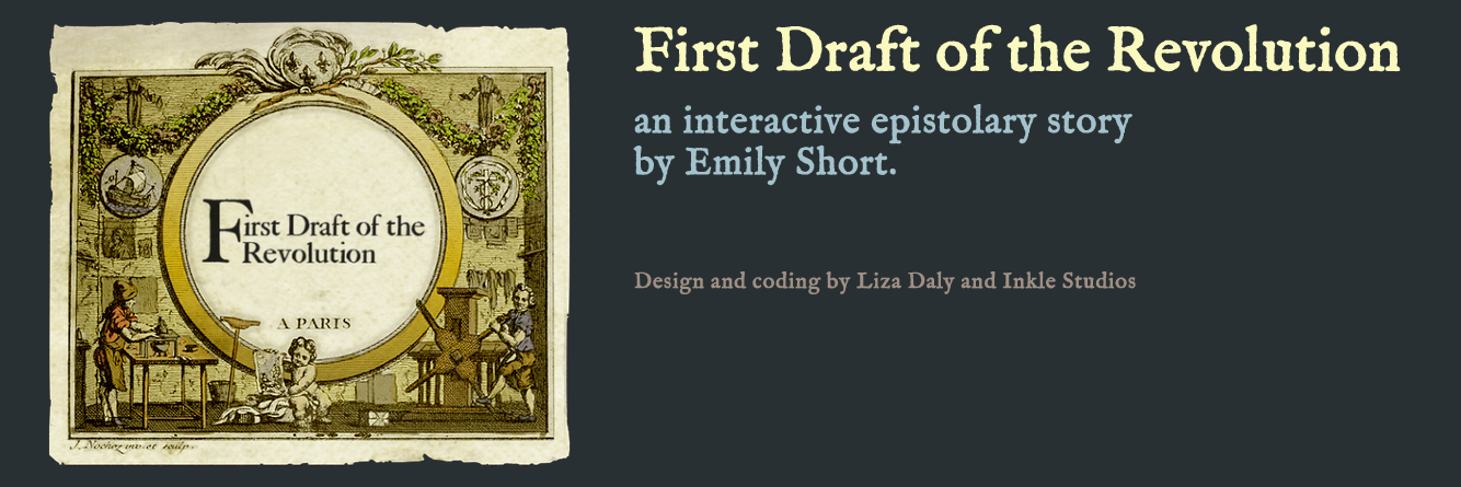First Draft is an interactive epistolary story I built with Liza Daly, with subsequent design work by inkle. Set in the universe of the Lavori d’Aracne, it tells a story from the beginnings of that universe’s French Revolution, when certain anti-aristocratic forces are finally discovering how to break the magical power that has kept the nobility in power for so long.