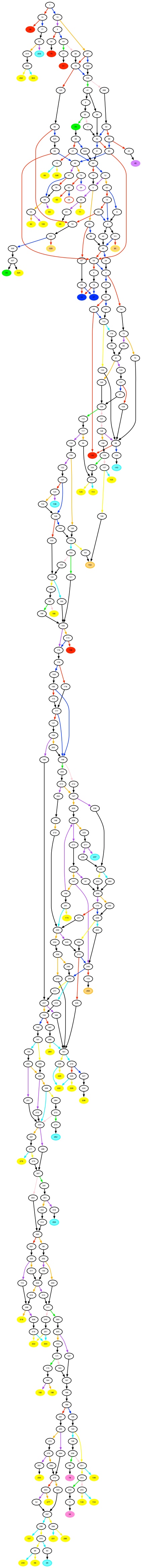 1. It takes time, but not as much as you might think. I don’t think they’re quite as nice-looking as some of Sam Ashwell’s CYOA charts (and I’m not quite sure how he does those), but my method is to go through the book page by page, usually after I’ve already played a lot of it more organically, and note all the links in DOT format. This means recording a lot of lines of the form “108 -> 222;”. I can also specify coloring at this level.