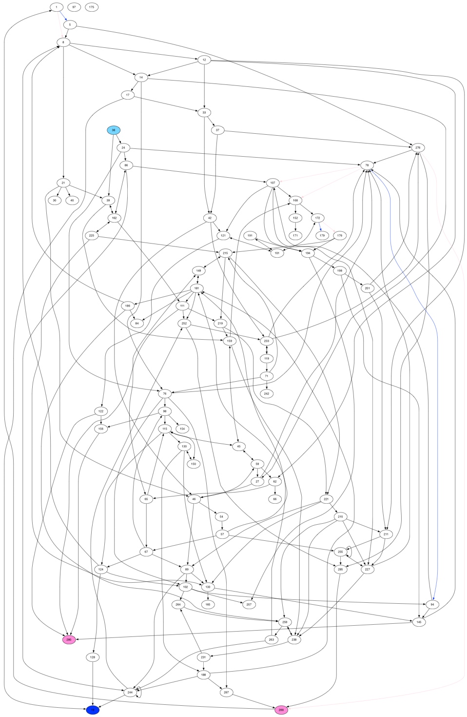 There’s one bit I haven’t quite understood: if you look closely at the above chart, you’ll see there’s a node 38 — I’ve colored it light blue to make it stand out — which has no inputs, but which does have outputs, and isn’t one of the two pages that explicitly say “you can only get here if you cheat.” I’m not sure what’s going on here. Maybe I mapped wrong (though I went through twice looking for how to get to 38, it’s conceivable that I still screwed up). Maybe it’s a bug (though that would surprise me). Or maybe you get there by solving a puzzle somewhere along the line that I just didn’t solve. I’m not sure. But leaving this book with a little bit of mystery seems about right.