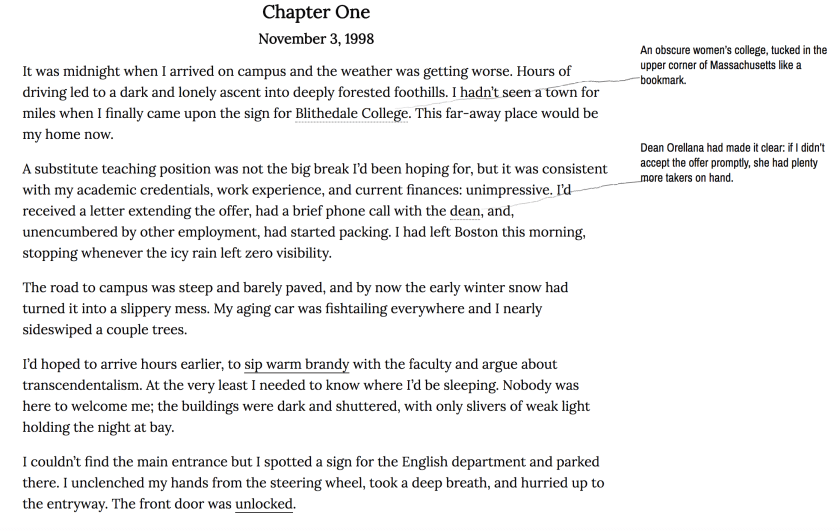 At times it seemed to me that clicking these links, I was fishing up from the depths the backstory in Grace’s real life that had given rise to a particular narrated event or image.