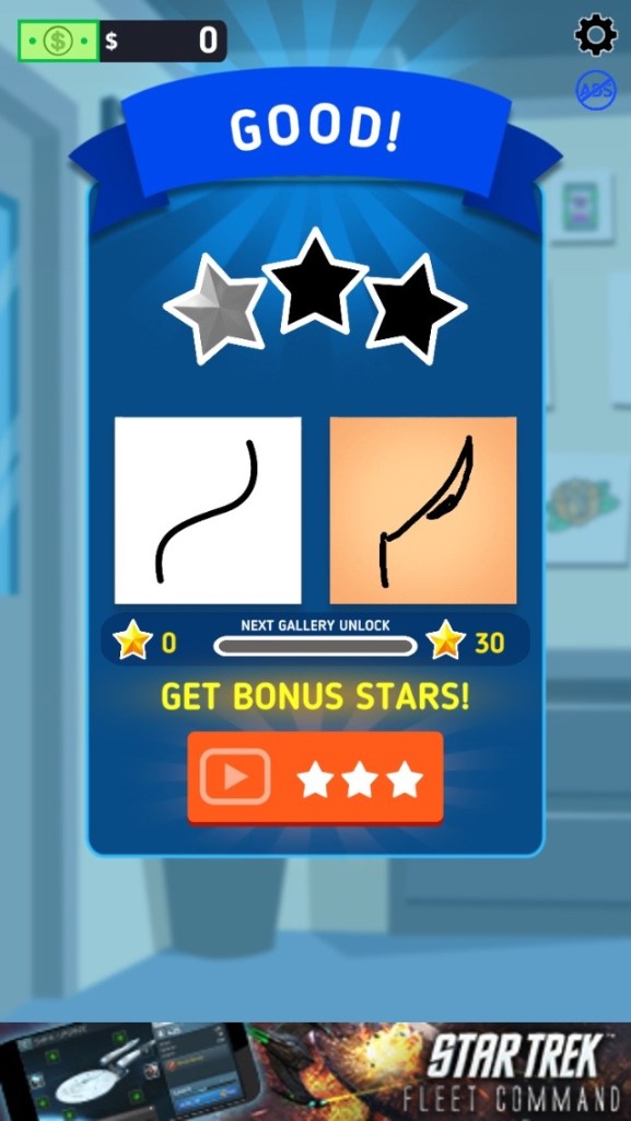 On the other hand, if you do enjoy the story but want to save it up for a quiet moment when you can read it closely, you can stockpile a bunch of stars and then spend some coherent time reading through a whole sequence of storylets, creating a more coherent narrative experience than if the 1-1 relationship between gameplay and story content were rigorously enforced.
