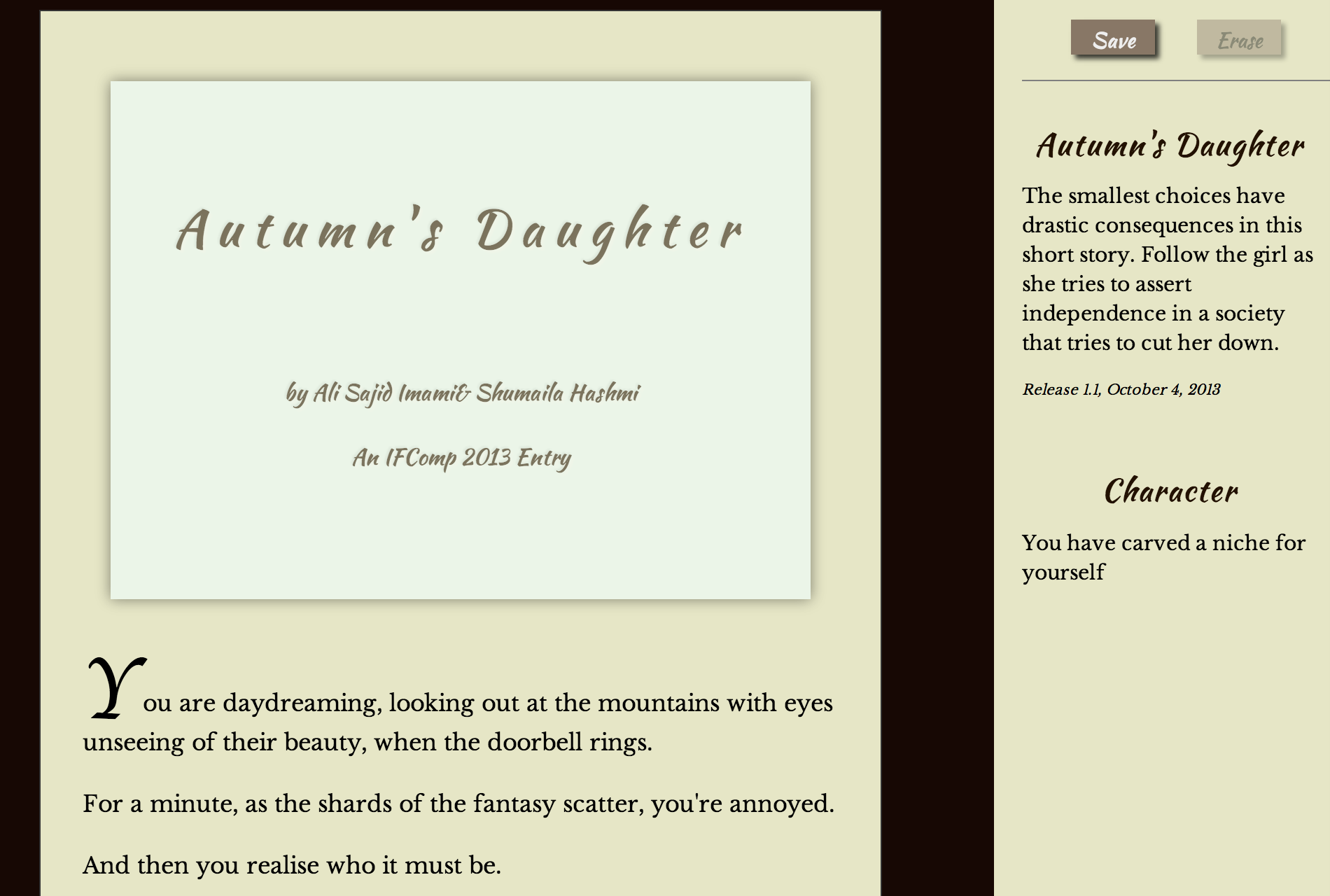 The effect is of course intentionally disorienting. The more information you amass about Wingate and his father, the less you have a sense of stability and direction. If you’re the kind of person who gets a little anxious about the prospect of being lost in an interactive story — if you dislike not knowing where the end is and how to get there and how far you’ve come already — then this is likely to awaken those discomforts.