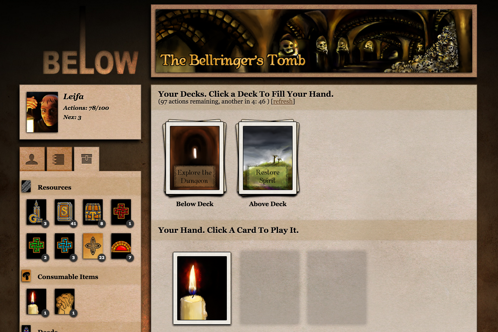 * Black Crown, Rob Sherman. Uses similar underlying mechanics to Fallen London, but to tell a more focused and darker story. Body horror and strange smells abound.