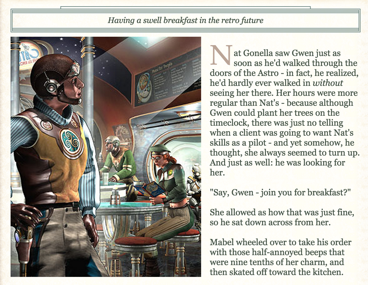 Anyway, Chlorophyll. I enjoyed it, and I’m glad to see another entry from Steph Cherrywell. I had a few implementation nitpicks I’ll put on the other side of spoiler space, but essentially it’s fun, gently challenging, with a fresh enough concept to keep things interesting, and a handling of its female characters that I found very welcome. And while it’s mostly focused on a pubescent girl, it sketches a few of those elusive mature female characters in the background, not only your mother but all the others who inhabit and run the station.