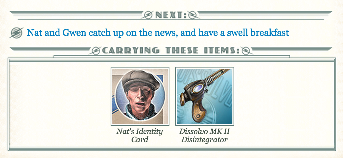 Then there’s Mom. The protagonist’s mother is put out of action fairly early on, in classic children’s/YA-literature style: the only way to get young people into adventure-hero roles is usually to remove the adults who would normally be responsible for dealing with serious situations. But this is handled reasonably adroitly. And despite the mother’s absence for the majority of the time, there are still a number of references back to her. I wouldn’t go so far as to say that the story is mainly about your relationship with her, but there are several points where it is important, and in particular one of the game’s key puzzle rewards doubles as a re-assessment of how Mom thinks of you.